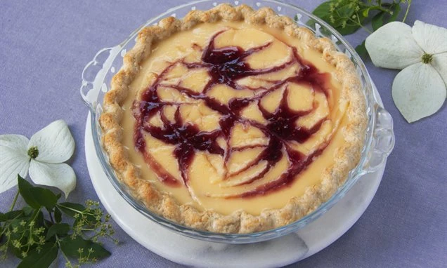 Avec le dos d’une cuillère de bois, faire des trous partout sur le dessus du gâteau. Verser la ganache en filets sur le dessus du gâteau.