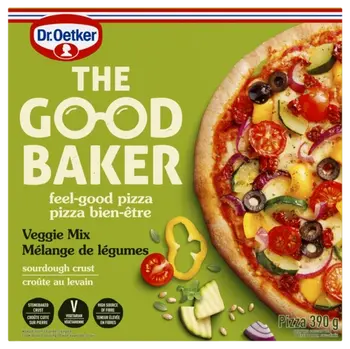 Experience feel-good pizza with The Good Baker! We start by long fermenting our delicious doughs. We then stretch into a thin and crispy crust, stone-bake to perfection and top with grilled peppers, zucchini, tomatoes, red onion black olives and cheese. Enjoy delicious pizza moments with Dr. Oetker!